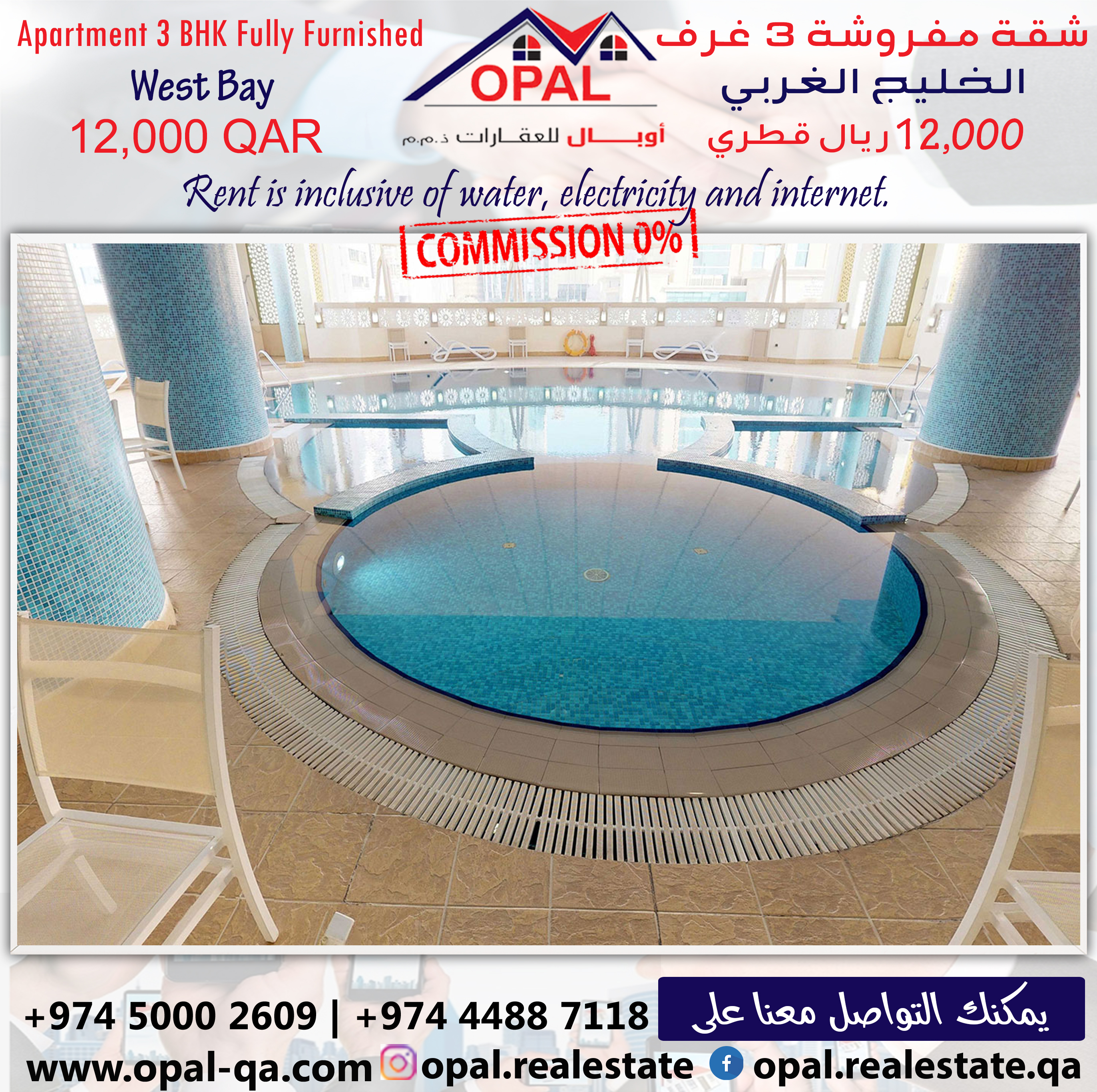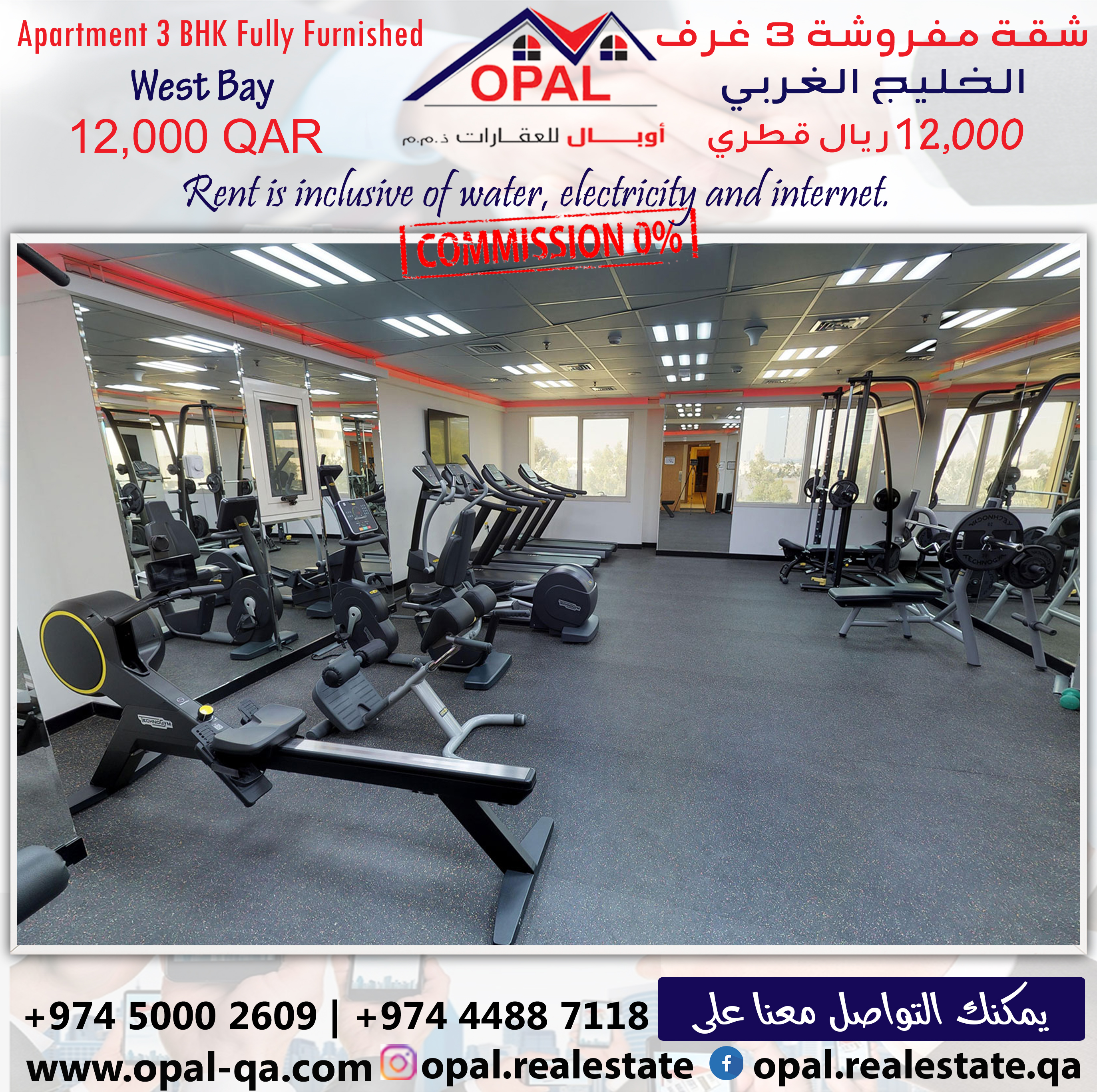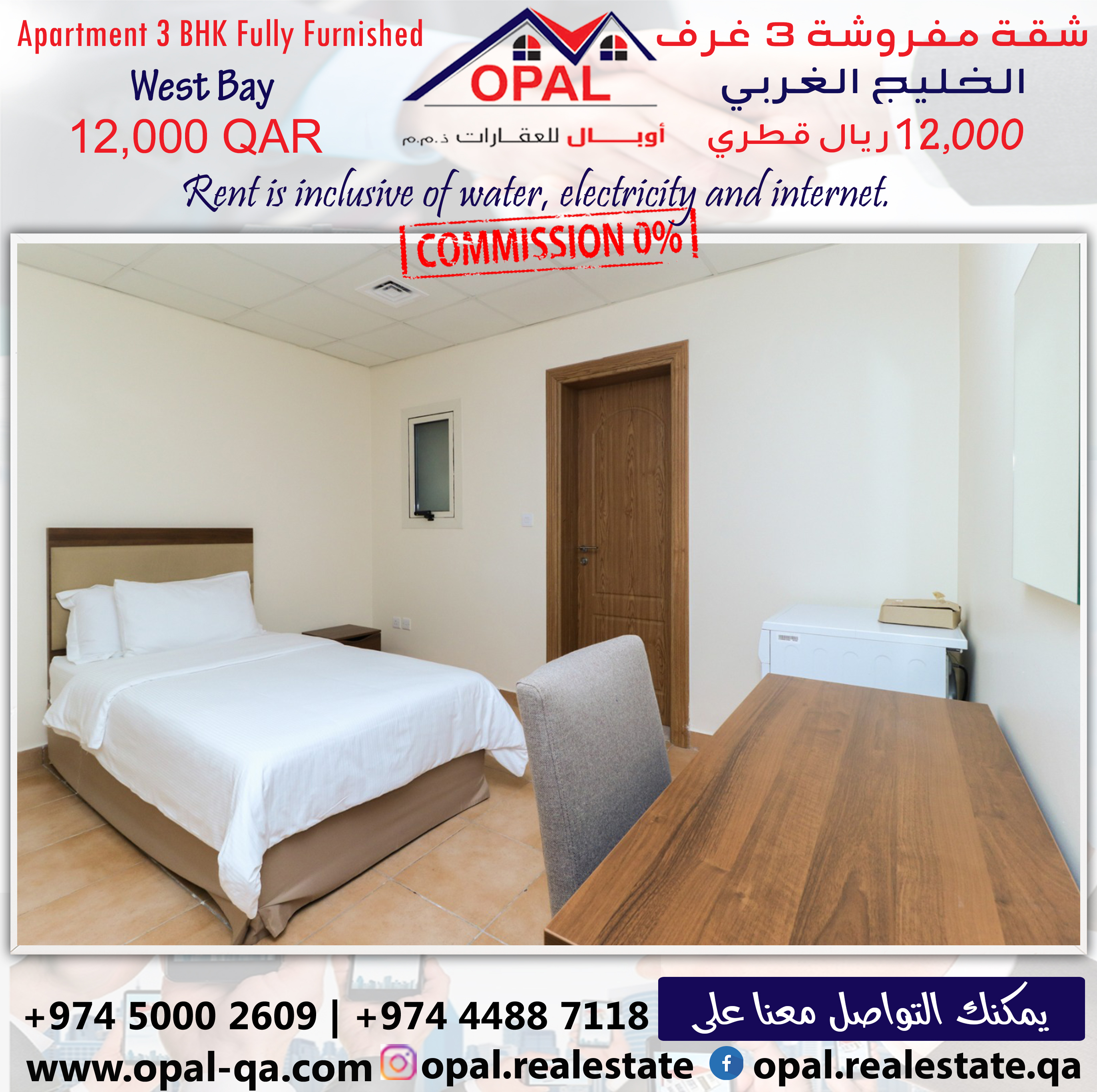 Apartment Price = 12000 QAR included all facilities ( Kahrama, Qatar Cool, Internet )