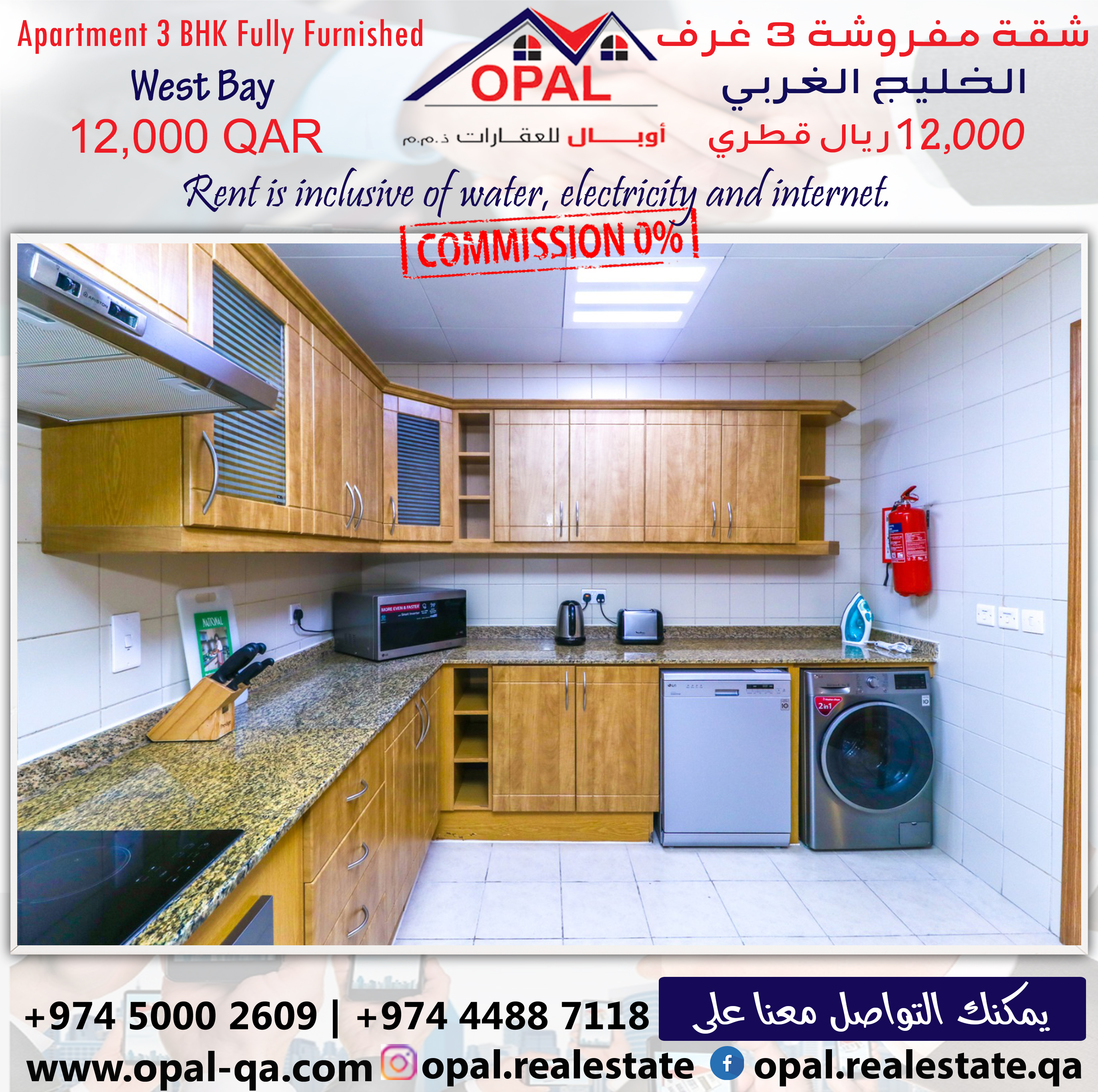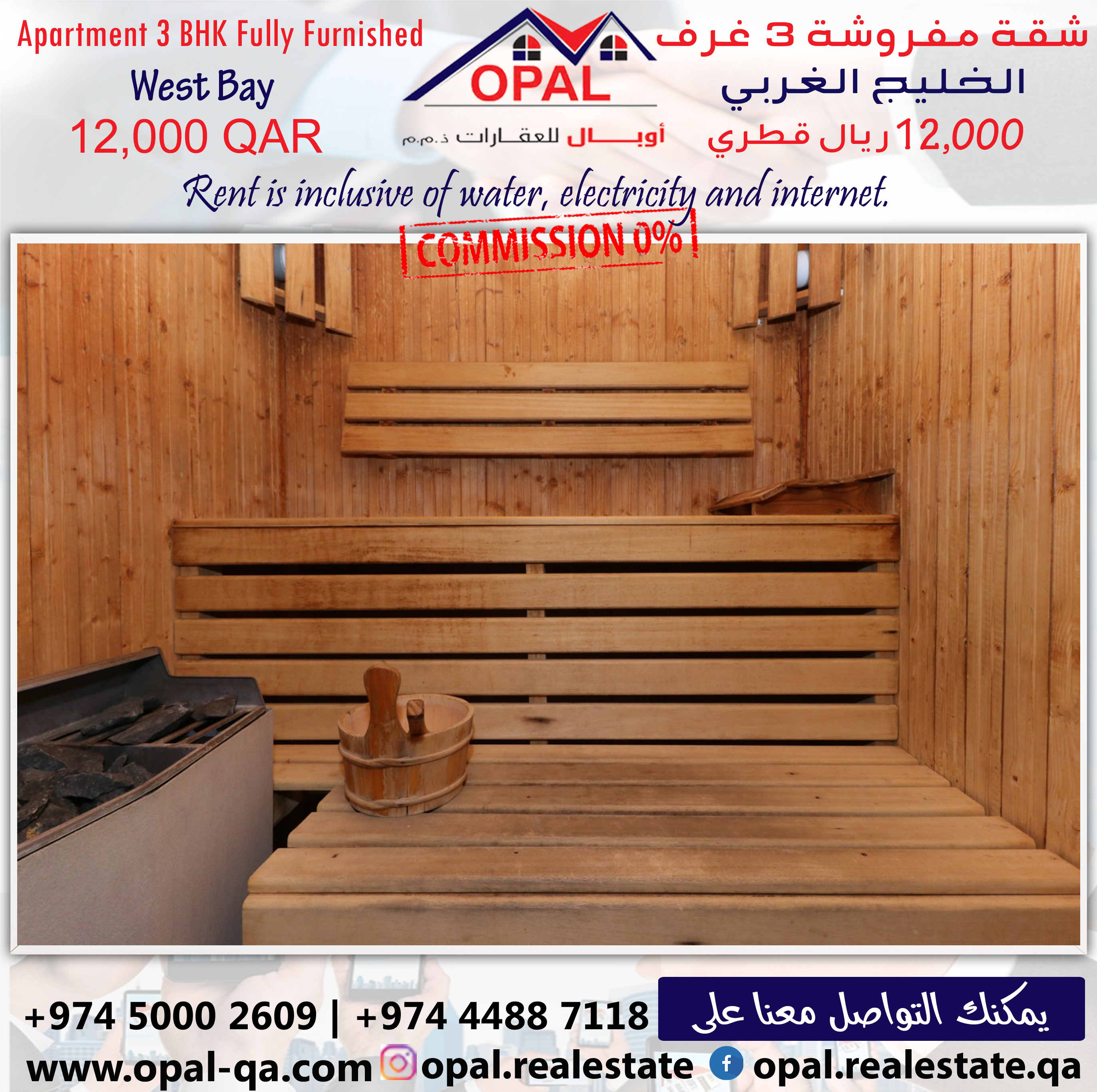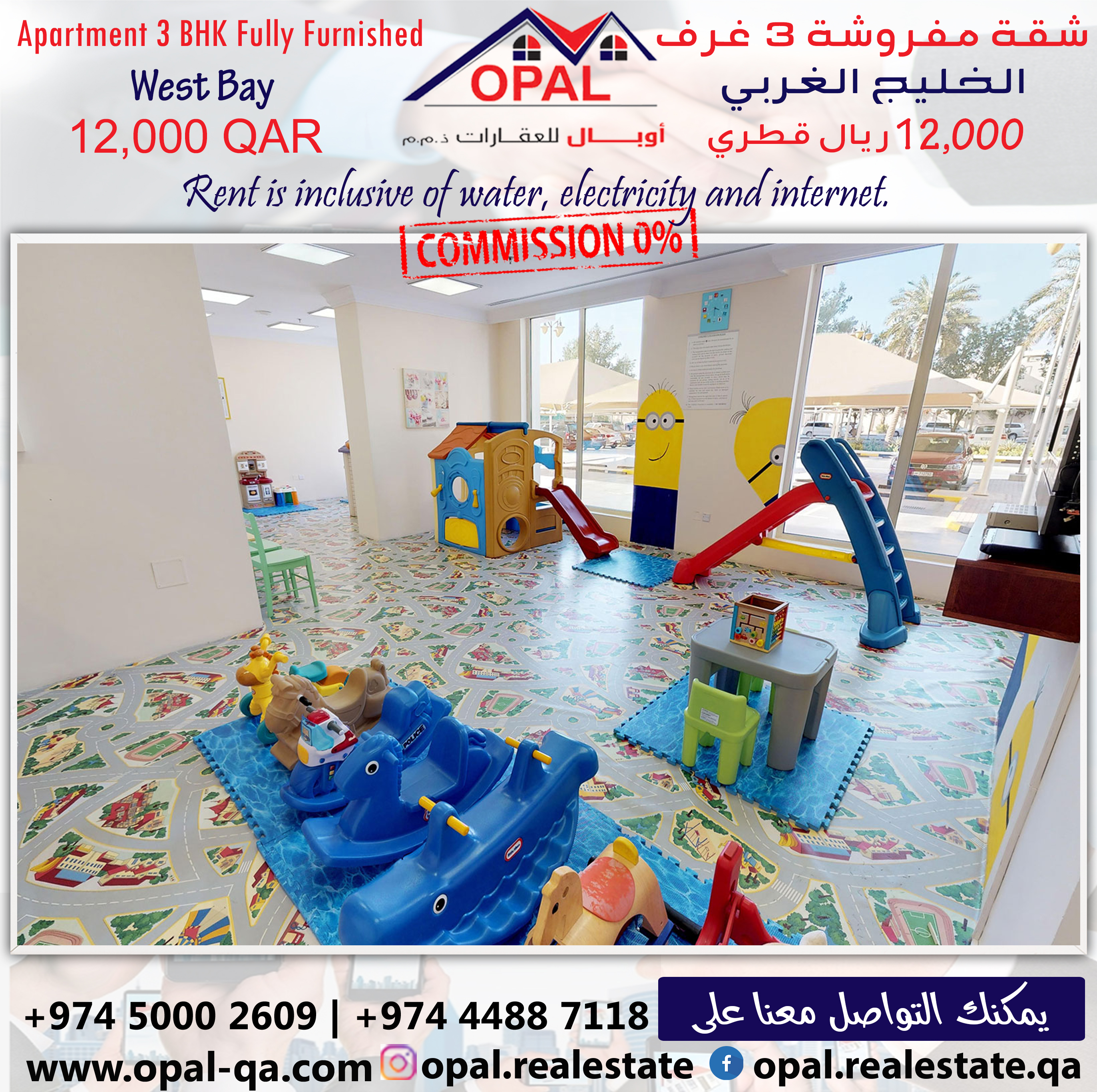 Apartment Price = 12000 QAR included all facilities ( Kahrama, Qatar Cool, Internet )